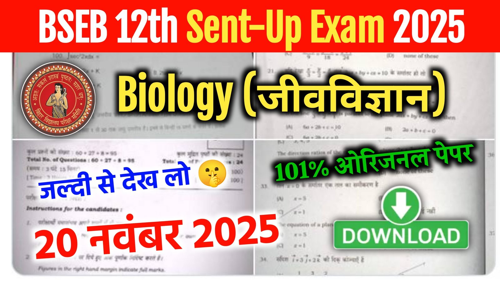 हेलो बच्चों, बिहार बोर्ड के द्वारा दिनांक 20 नवंबर 2025 को साइंस वाले बच्चों का प्रथम पाली में जीवविज्ञान (Biology) का परीक्षा हैं। इस परीक्षा का Question Paper एवं Answer Key इंटरनेट की सूत्रों की माने तो वायरल हो गई हैं। जिसे आप सभी विद्यार्थी इस लेख के माध्यम से भी चेक & डाऊनलोड कर पाएंगे।