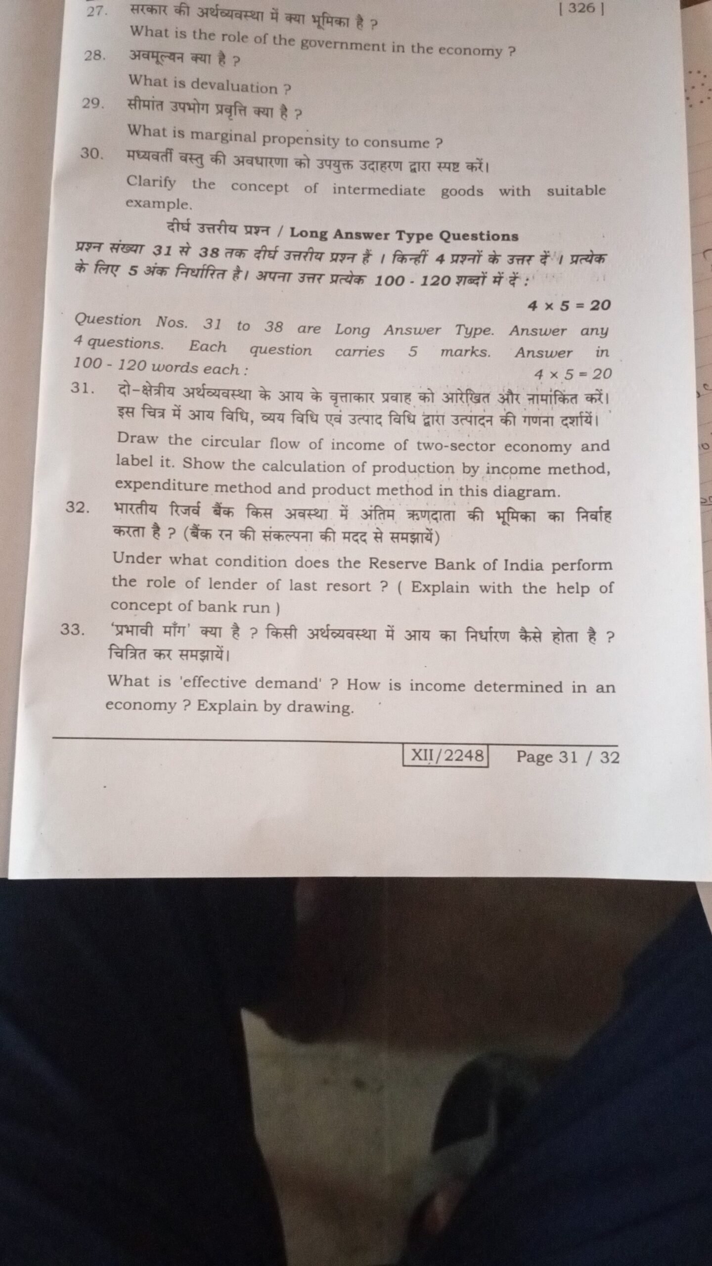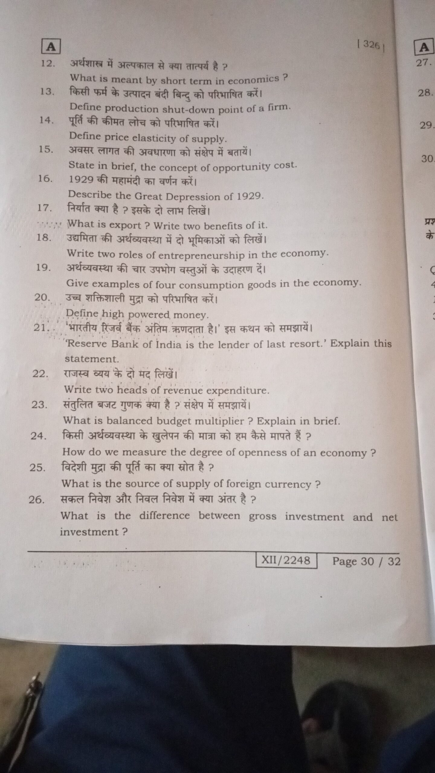 Bihar Board 12th Economics Sent Up Exam 2025 Question Paper