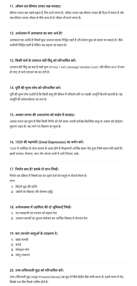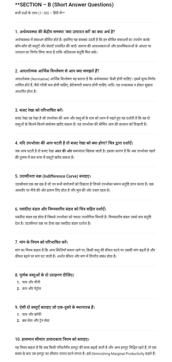 बिहार बोर्ड कक्षा 12वीं अर्थशास्त्र सेंटअप परीक्षा 2025 के ओरिजिनल Question Paper के 100% Correct Answer Key नीचे देख सकते हैं –