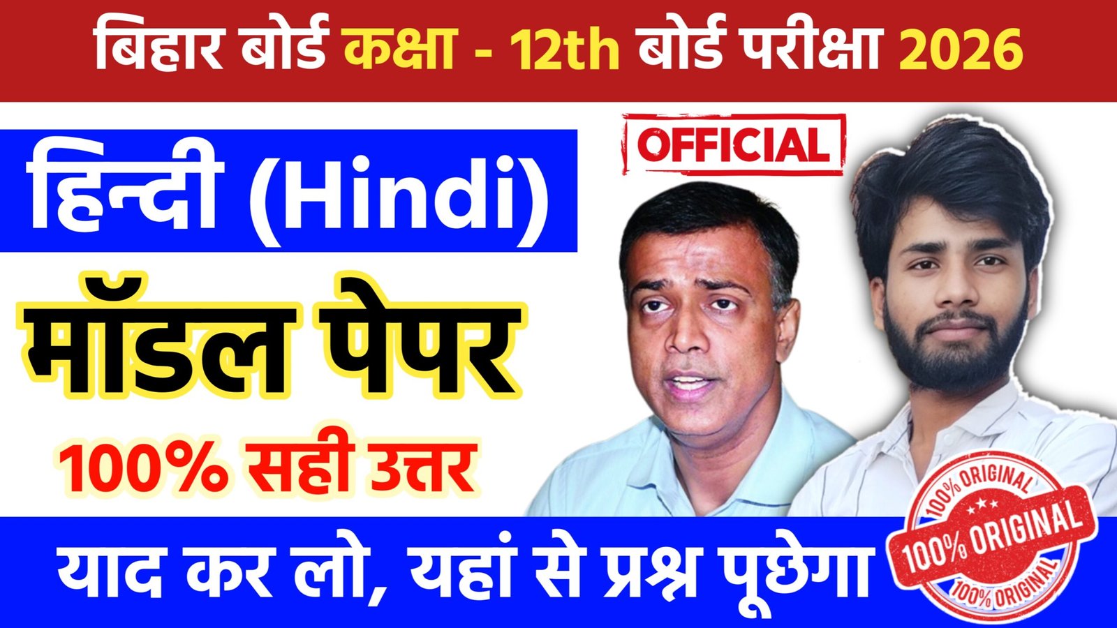 - 👉 Bihar Board Class 12 Hindi Model Paper 2026 Pdf Download (Official)