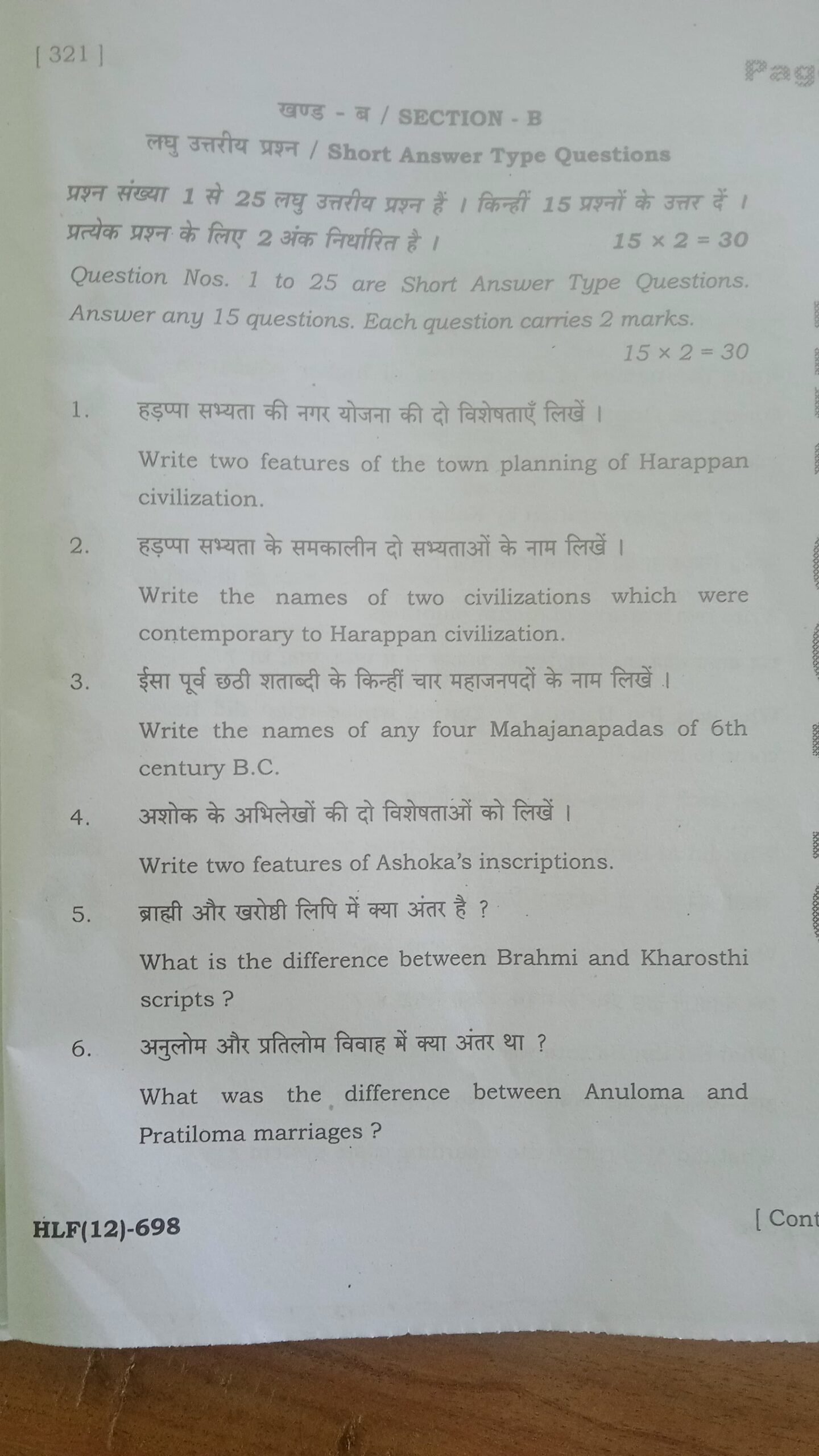 बिहार बोर्ड कक्षा 12वीं इतिहास अर्धवार्षिक परीक्षा क्वेश्चन पेपर 2025 (BSEB 12th History Half Yearly Question Paper 2025) नीचे देख सकते हैं –