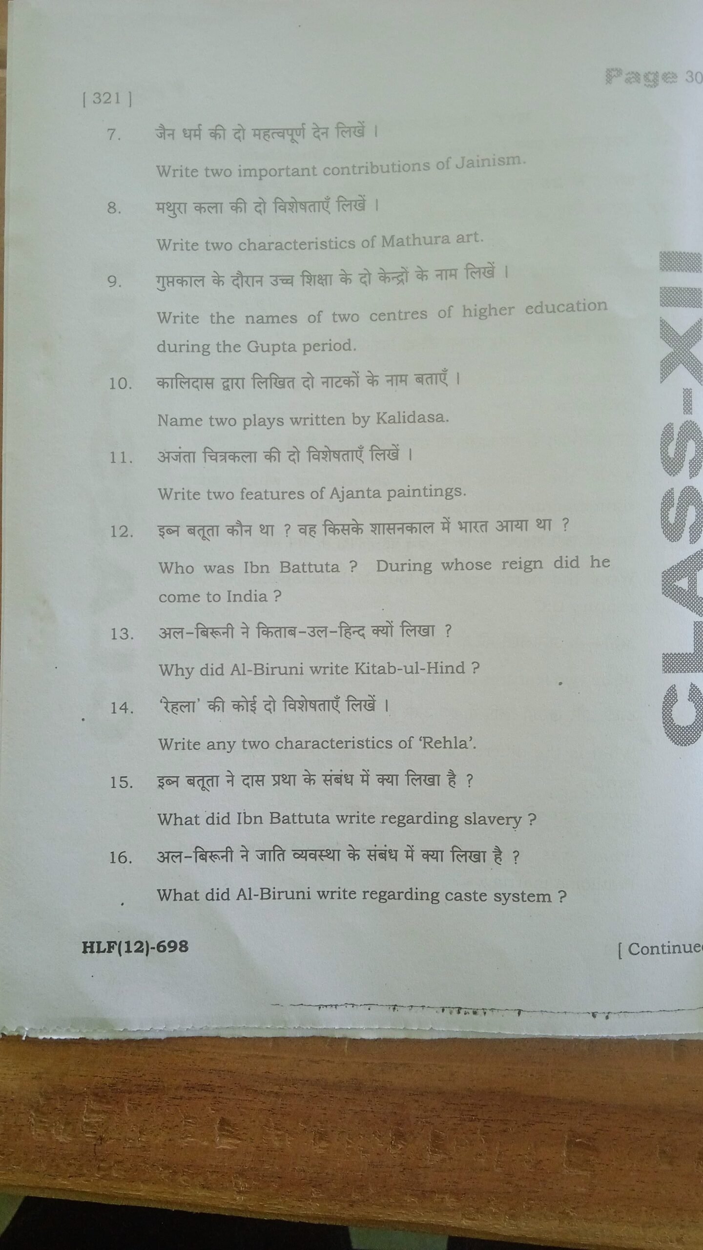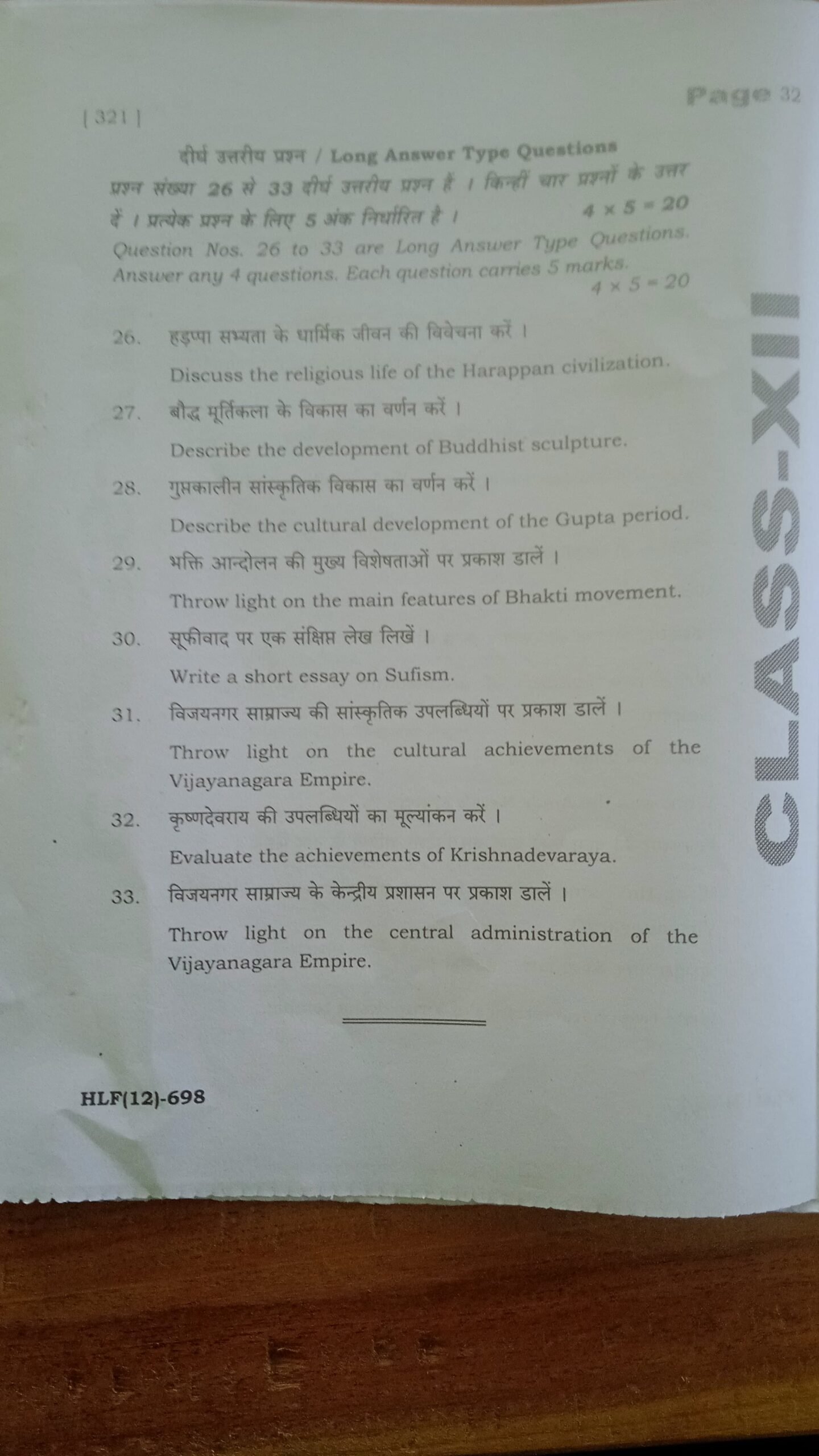 Bihar Board 12th History Half Yearly Exam 2025 Question Paper