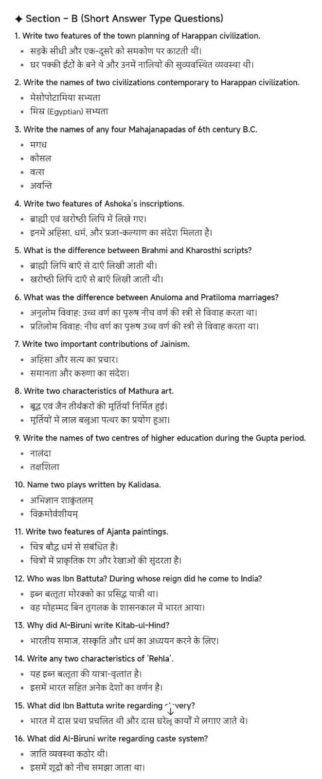 बिहार बोर्ड कक्षा 12वीं इतिहास अर्धवार्षिक परीक्षा 2025 के ओरिजिनल Question Paper के 100% Correct Answer Key नीचे देख सकते हैं –
