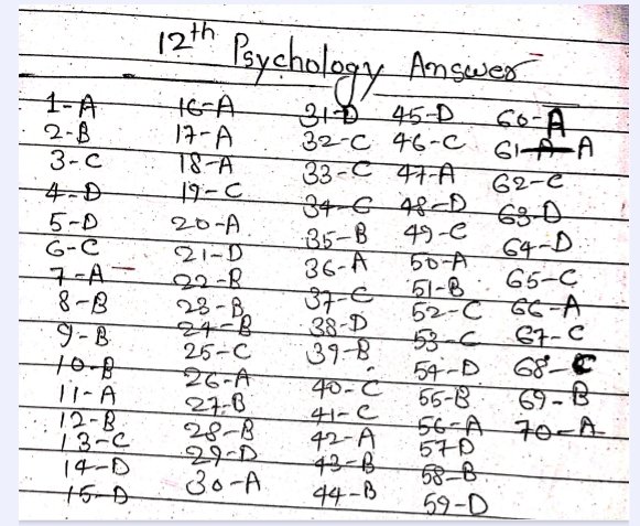 बिहार बोर्ड कक्षा 12वीं मनोविज्ञान सेंटअप परीक्षा 2025 के ओरिजिनल Question Paper के 100% Correct Answer Key नीचे देख सकते हैं –