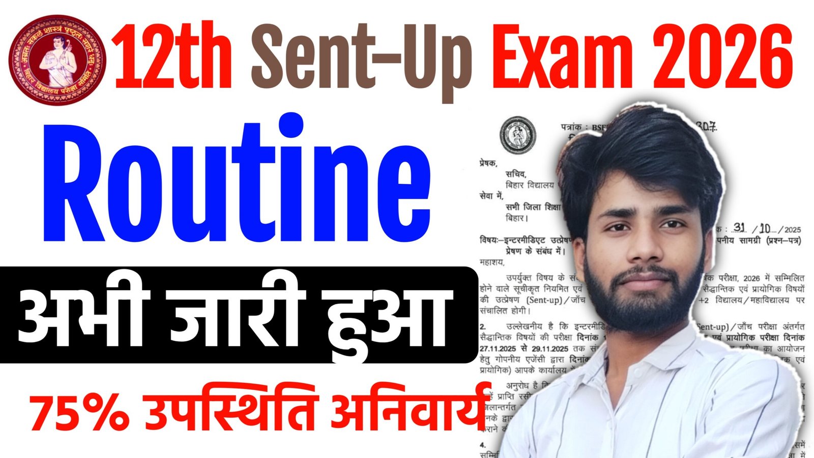 Bihar Board Inter Sent Up Exam Routine 2026: नमस्कार दोस्तों, बिहार विद्यालय परीक्षा समिति (BSEB) पटना ने इंटरमीडिएट वार्षिक परीक्षा 2026 में शामिल होने वाले छात्रों के लिए Bihar Board 12th Sent Up Exam Routine 2026 जारी कर दिया है।
