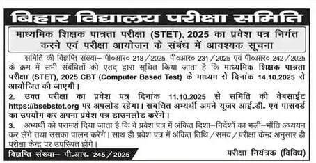 Bihar STET Exam 2025 Letest Updates