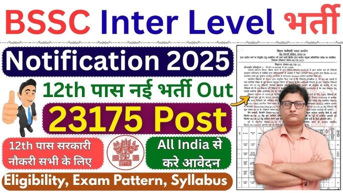 bssc 12th level vacancy 2025: इंकलाब जिंदाबाद दोस्तों, Bihar Staff Selection Commission (BSSC) ने Inter Level Various Post Recruitment 2025 के लिए आधिकारिक नोटिफिकेशन जारी कर दिया है। इस भर्ती के तहत कुल 23,175 पदों पर आवेदन आमंत्रित किए जा रहे हैं। अगर आप 12वीं पास हैं और बिहार में सरकारी नौकरी की तलाश कर रहे हैं, तो यह आपके लिए एक बड़ा मौका है। BSSC Inter Level Online Form 15 अक्टूबर 2025 से शुरू हो चुका है और उम्मीदवार 15 दिसंबर 2025 तक आवेदन कर सकते हैं।