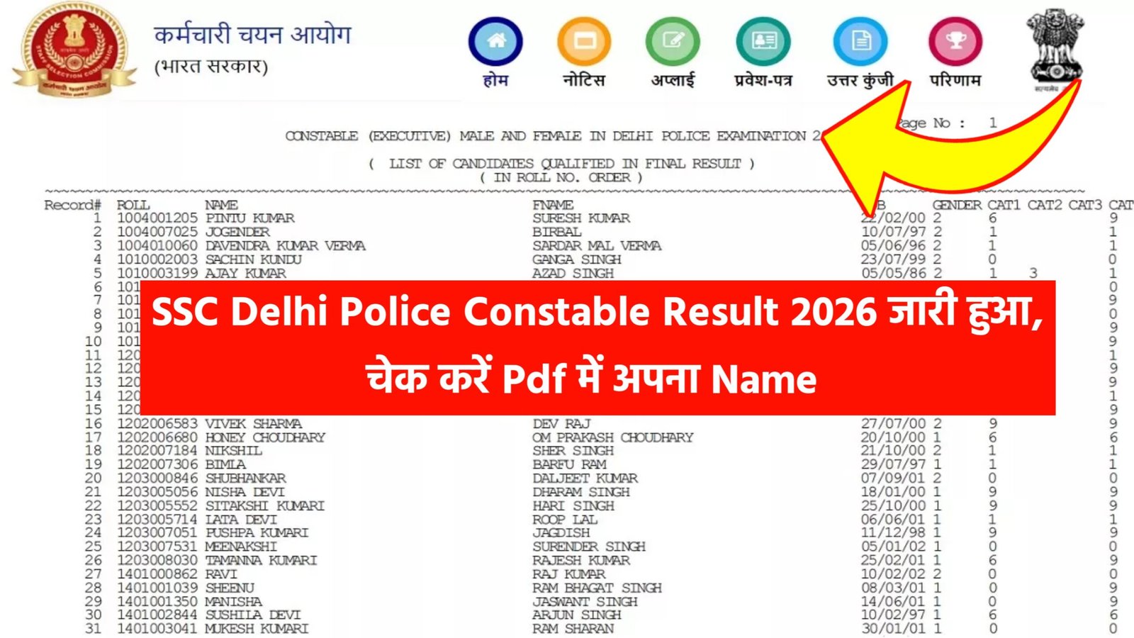 SSC Delhi Police Result 2026 (Released) – Constable, Driver, HC Result PDF Download @ssc.nic.in
