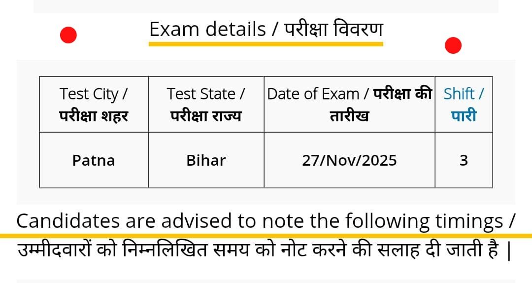➡️ Admit Card 23 November 2025 से जारी होना शुरू हो जाएगा।